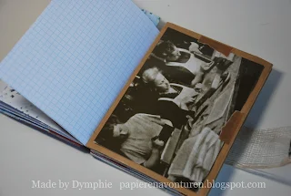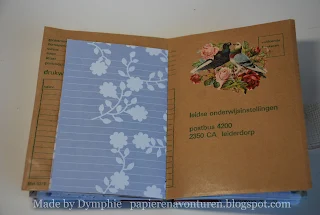 Ze maakte het van allerlei soorten papier, je kan er alles over lezen op haar blog hier. Binnenin is het boekje gedecoreerd met stempels, foto's, postzegels, kantjes... het zit vol verrassingen!
