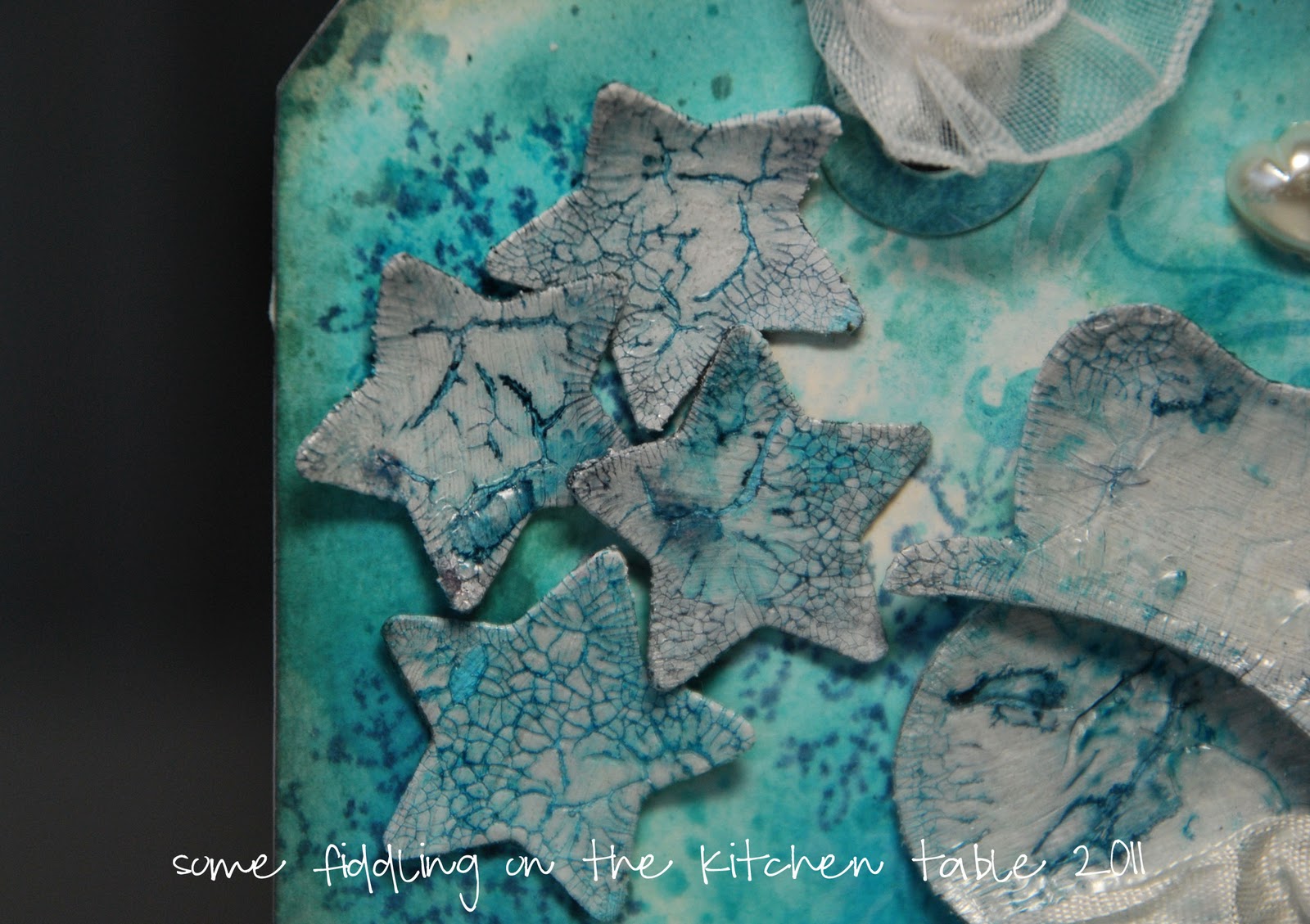 Opnieuw een techniek van Tim Holtz gebruikt voor dit label.
