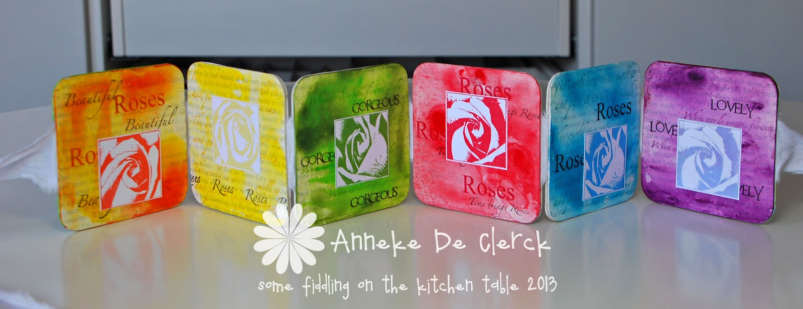 Time to show the new Art Journey stamps this week. I made a harmonica folded book from beer mats with the new 'Roses 2' stamp set. I've made a similar booklet before HERE.