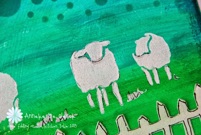 Voor kaartje 2 een achtergrond gemaakt met verf en een sjabloon.