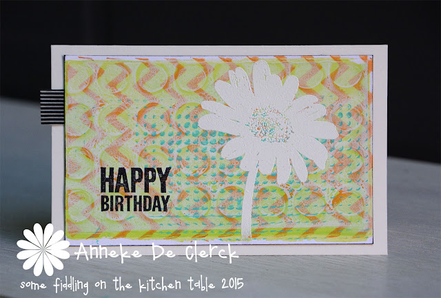 Voor deze eenvoudige kaart een gelli plate print gebruikt.