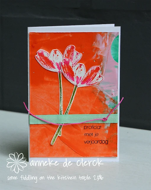 Een andere tulpenstempel gebruikt maar op dezelfde manier gestempeld als bij de vorige kaart.