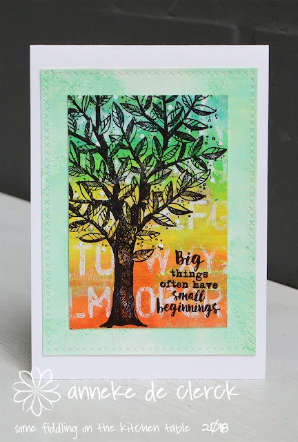 De boom en tekst afgedrukt op een gel print. Alles op een witte basiskaart gekleefd en toen was het al klaar.