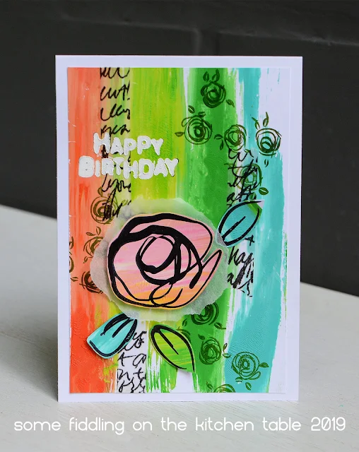 I started by painting colorful stripes on the background of this card.