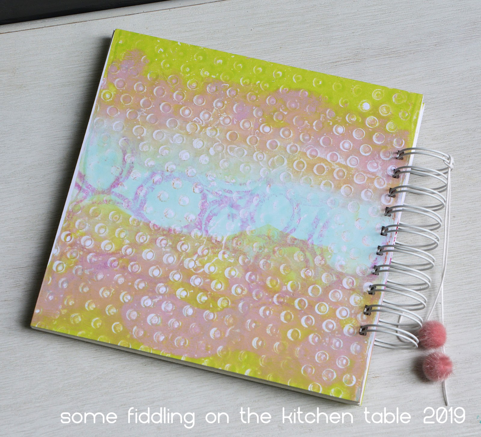 Darkroom Door recently released a large stencil with dots. I was asked to make a few projects with this stencil. I started by creating a spiral bound book. To decorate the front and back cover I used gel prints. Below I added a mini tutorial on how to create those gel prints.