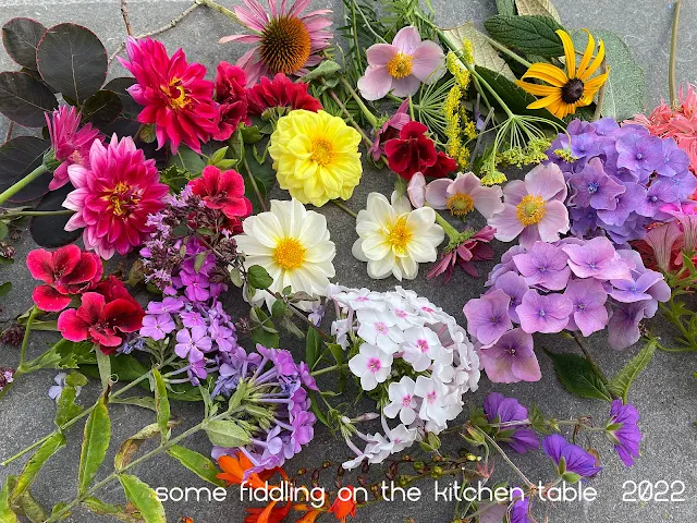 I picked this collection of flowers from the garden. I was hoping purples and reds would work well :)