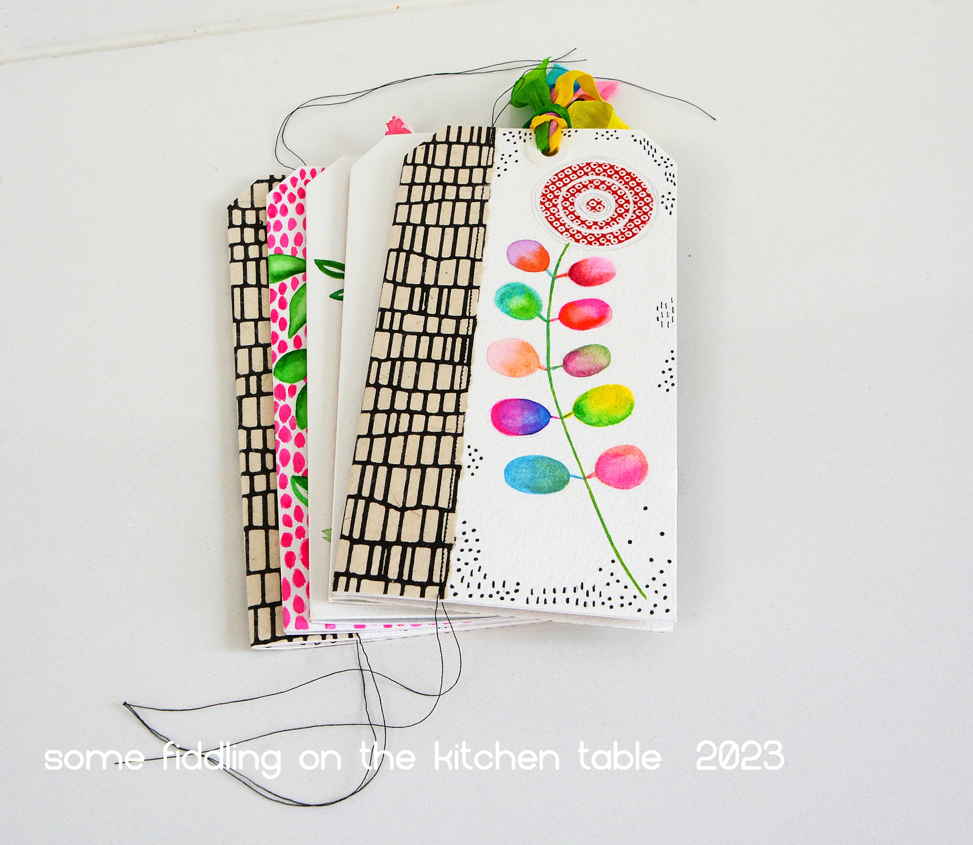 Door elke katern afzonderlijk te naaien kon ik ook verschillende kleuren draad gebruiken.