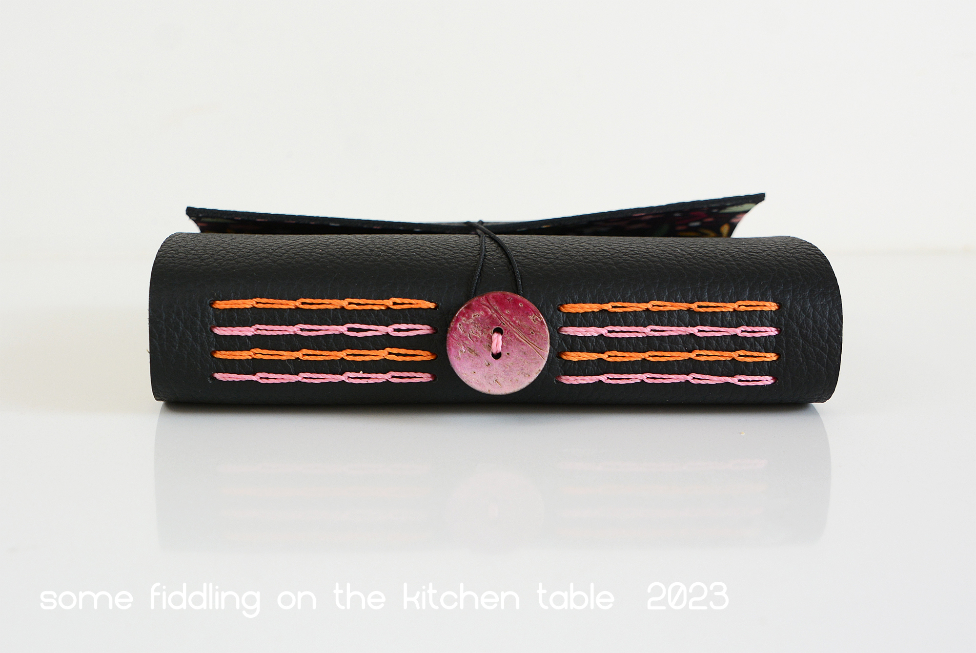 For book 2 I again used a piece of leather from a sample book I once received for free. To make the leather a bit firmer I backed it with a piece of cotton fabric.